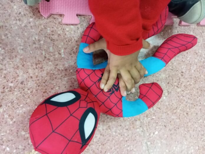 Esta actividad lleva por título “Tú puedes salvarle” y el objetivo es practicar jugando con los alumnos los distintos ejercicios: masaje cardiaco, posición lateral de seguridad, cadena de supervivencia en la atención de primeros auxilios o reanimación cardiopulmonar.