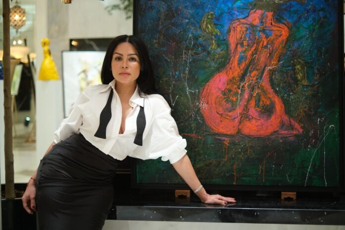 La muestra trasciende el formato expositivo tradicional para convertirse en una experiencia sensorial que integra artes plásticas, música y alta costura, reafirmando la fuerza del talento dominicano en los principales escenarios culturales del mundo. La exhibición reúne treinta obras, entre lienzos de gran formato, esculturas monumentales y una pieza única de alta costura pintada a mano, creada en colaboración con la reconocida diseñadora dominicana Giannina Azar, acompañada de joyería en larimar de Gisselle Mancebo y una banda sonora original de jazz compuesta por el músico Luis McDougal.
