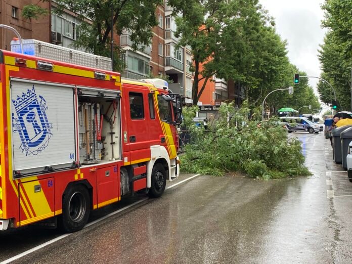 Las lluvias caídas esta mañana en la ciudad de Madrid han provocado que un árbol caiga a la vía cortando la circulación en ambos sentidos de la calle San Cipriano. La policía municipal de Mádrid junto a los Bomberos trabajan ya para la retirada del árbol de la vía.