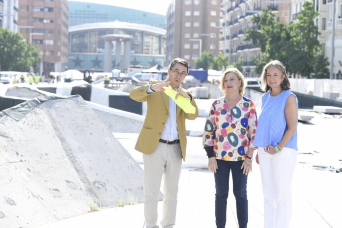 La delegada de Obras y Equipamientos, Paloma García Romero, acompañada por la concejala de Salamanca, Cayetana Hernández de la Riva, ha visitado hoy las obras de rehabilitación que el Ayuntamiento de Madrid está llevando a cabo en la plaza de Salvador Dalí, en el distrito de Salamanca. Los trabajos, que suponen una inversión de 1,5 millones de euros, afectan a una superficie total de 17.000 m2 y abarcan también las calles de Lombía y Fernán González. La actuación finalizará previsiblemente en el verano de 2026.
