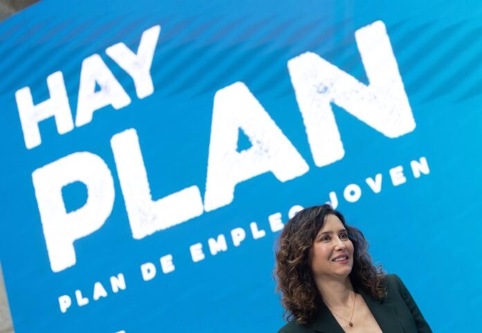 La presidenta de la Comunidad de Madrid, Isabel Díaz Ayuso, ha presentado este lunes su Plan de Empleo Joven dotado con más de 200 millones de euros y con 50 medidas destinadas a orientar, formar y ahondar en la intermediación entre la Administración y la empresa.