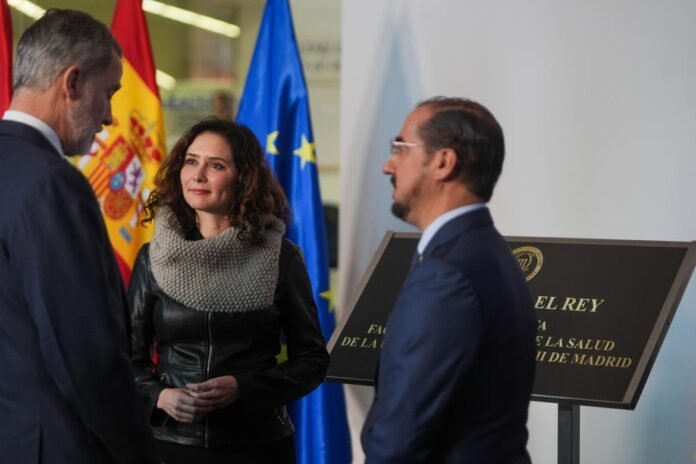 La presidenta de la Comunidad de Madrid, Isabel Díaz Ayuso, ha asistido hoy a la inauguración de la nueva Facultad de Ciencias de la Salud de la Universidad pública Carlos III de Madrid, cuyas instalaciones se ubican en el campus de Getafe. El acto, en el marco de la conmemoración del Día de la Universidad, ha estado presidido por Su Majestad el Rey Felipe VI, que también ha recibido la Medalla de Honor de esta institución.