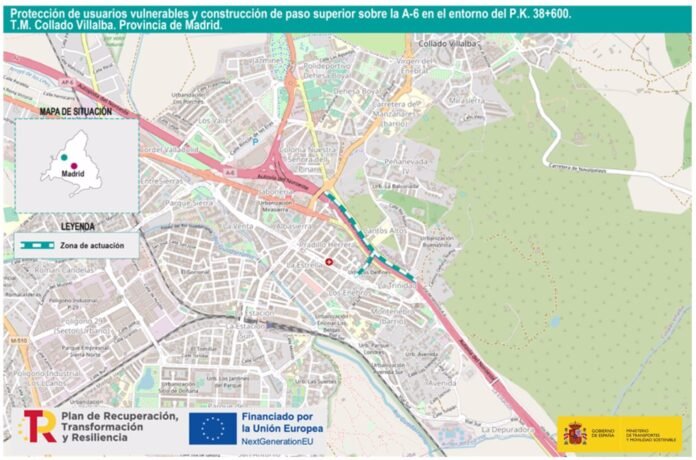 El Ministerio de Transportes y Movilidad Sostenible ha formalizado por 620.546,15 euros (IVA incluido) un contrato de obras para la construcción de un itinerario peatonal, que incluye un paso superior sobre la autovía A-6, en el entorno del punto kilométrico 38,600, en Collado Villalba (Madrid).