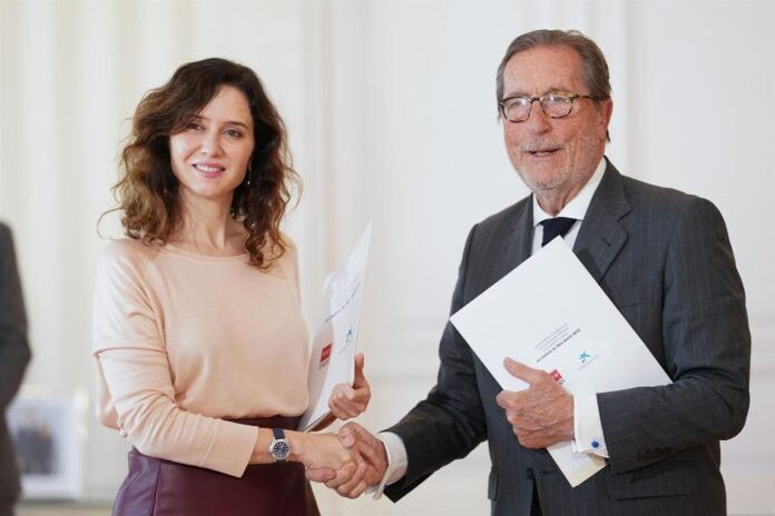 La presidenta de la Comunidad de Madrid, Isabel Díaz Ayuso, ha firmado este martes en la Real Casa de Correos, sede del Ejecutivo madrileño, un acuerdo marco de colaboración con el director general de la Fundación ‘la Caixa’, Antonio Vila Bertrán, que contempla distintas actuaciones conjuntas en el ámbito social, científico, cultural y educativo para este año por valor de 70 millones de euros.