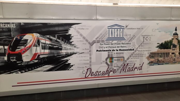 La estación de Recoletos de la red de Cercanías de Madrid (C-1, C-2, C-7, C-8 y C-10) ha estrenado recientemente mejoras de iluminación y nuevos acabados en las galerías de acceso, coincidiendo con la puesta en servicio a principio del mes de julio de las nuevas instalaciones para mejorar la accesibilidad.