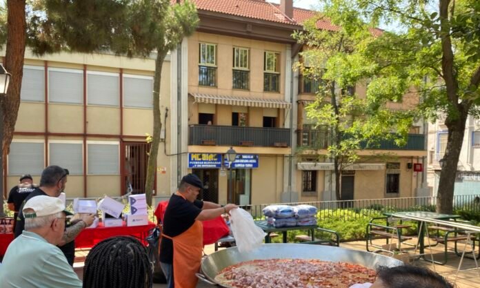 Desde primera hora de la mañana, el aroma a arroz, pimiento, calamar y azafrán se expande desde la plaza principal. Es allí donde se monta una gigantesca paella comunitaria: cuencos colosales, fuego vivo y el baile rítmico del cucharón. El plato, compartido por quienes viven y visitan el barrio, se ha convertido en símbolo de unión: vecinos y visitantes se sientan juntos, comparten raciones y también historias, risas e historias cotidianas que afianzan los lazos que hacen fuerte a Vicálvaro.