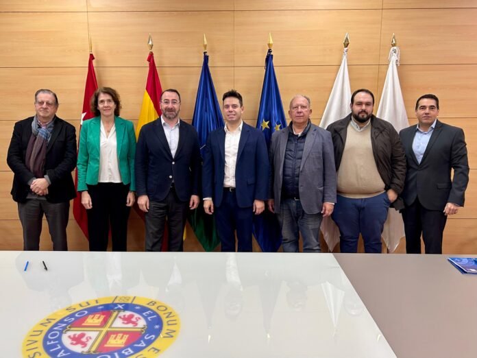 El alcalde de Colmenar Viejo, Carlos Blázquez Rodríguez, junto a la tercera teniente de alcalde y concejal de Desarrollo Empresarial y Empleo, Susana Jiménez Aibar, ha firmado un convenio con la Universidad Alfonso X el Sabio (UAX), en el que ha participado también la asociación de empresarios y comerciantes colmenareña ASEYACOVI.