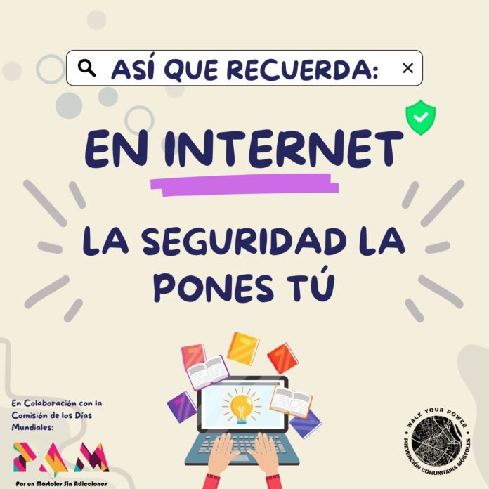 Desde el Plan de Adicciones del Ayuntamiento de Móstoles, a través de la Comisión de los Días Mundiales junto con el Grupo de Prevención Comunitaria de Móstoles “Walk Your Power” (WYP), se ha elaborado un decálogo de buenas prácticas para hacer un uso seguro de internet, bajo el lema “La seguridad la pones tú”, dirigido a toda la población y, especialmente, a la población infantil y adolescente.