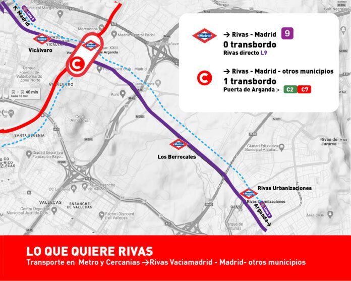 El nuevo transbordo, forzado por este proyecto del Gobierno regional, supondría un grave perjuicio para las vecinas y los vecinos de Rivas que usan esta línea de Metro, tanto en el tiempo empleado en sus viajes como en los recursos económicos que tengan que destinar a ellos. Hay que recordar que Rivas es el único municipio de su tamaño en la Comunidad de Madrid que no cuenta con estación de Cercanías.