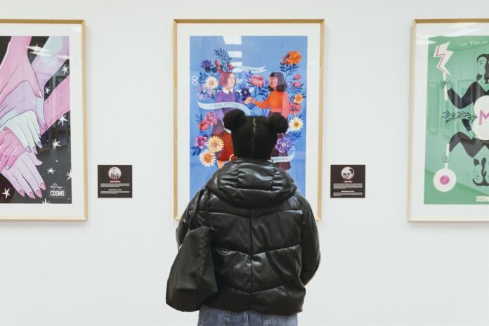 Se trata de la muestra ‘8 Ilustraciones para el 8M’, comisionada y producida por el canal de televisión Cosmo, que nace en 2021 precisamente de un proyecto colaborativo en el que el canal comparte cada año ocho ilustraciones hasta reunir en 2024 un fondo expositivo de 32 obras que pretende «abrir nuevos debates y conversaciones alrededor del 8 de marzo».