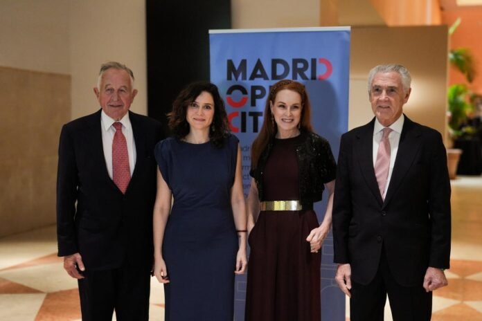 Díaz Ayuso ha participado hoy en la gala de los premios Madrid Open Cities Awards, celebrada en el Museo Thyssen-Bornemisza de la capital, y promovida por la asociación Madrid Open City para reconocer la labor de entidades, personas y proyectos que han contribuido significativamente a hacer de la región el mejor lugar para invertir, vivir y trabajar. La presidenta ha entregado el galardón en la categoría Atracción de Talento al Ayuntamiento de Alcobendas que se ha convertido en la segunda ciudad de España con más multinacionales, solo por detrás de la capital.