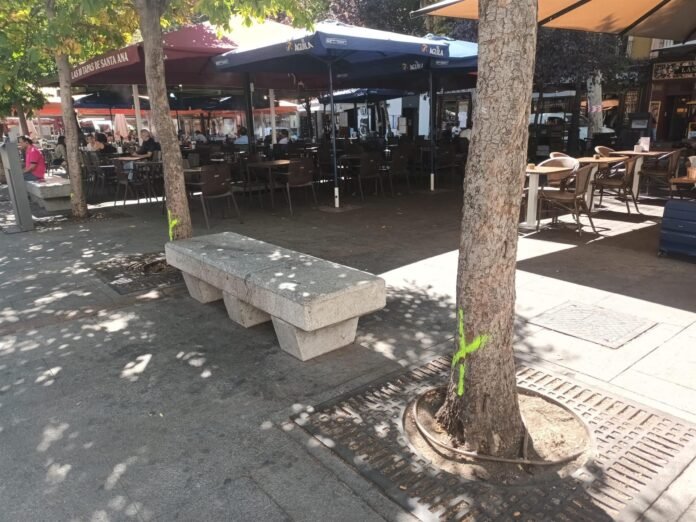 «Si no lo impedimos, un 85 por ciento del total del arbolado de Santa Ana desaparecerá en los próximos días, en plena ola de calor. Cipreses, cerezos japoneses y castaños de Indias, algunos de gran porte, serán convertidos en serrín para acometer una remodelación del aparcamiento que la vecindad no ha pedido», han proseguido.